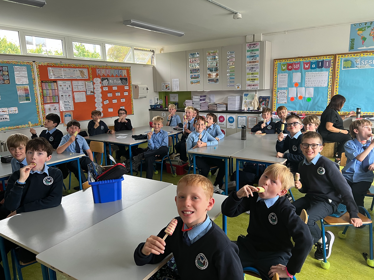 This week, the boys made colourful loom bands and thoughtful “Bí Cineálta” posters to celebrate Friendship Week. In class, they worked with concrete resources in maths to make patterns and enjoyed creating bright colour wheels in art. A busy week full of kindness and creativity!