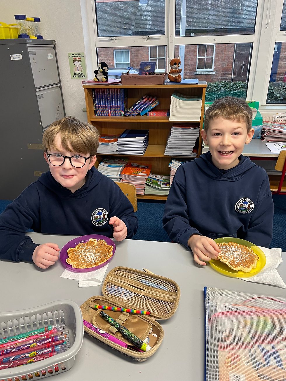 It was such a nice treat when some parents came in to make waffles for every class to celebrate our school’s 125th birthday. Go raibh míle maith agaibh!